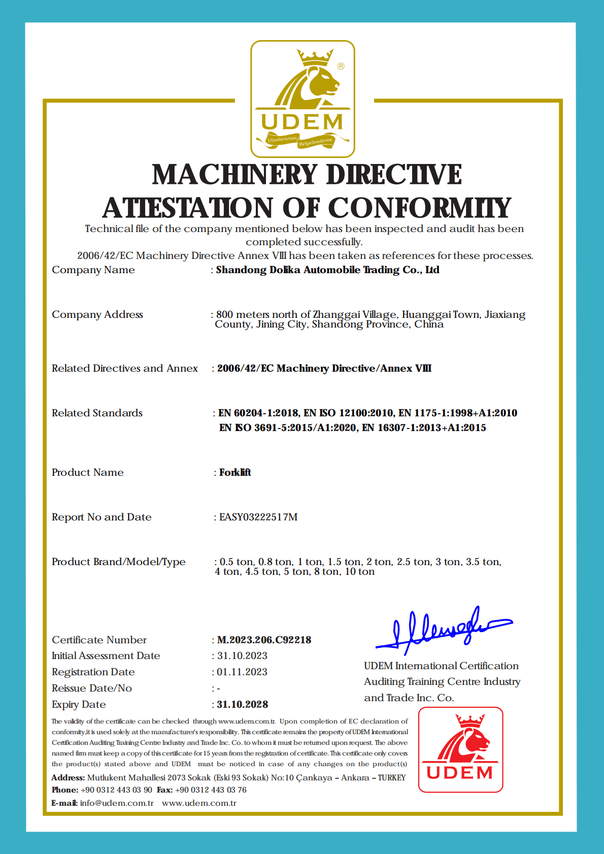 Yes! We offer OEM branding services including logo placement and custom colors even for single unit orders. This makes our forklifts perfect for rental companies or businesses wanting their own branded equipment.